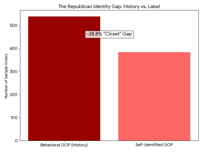 - The Brand Gap: 19% of voters have a Republican voting history but refuse to identify as "Republican" in the poll.