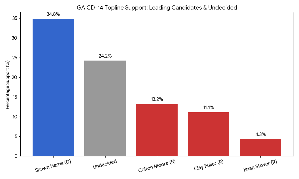 - GOP Fragmentation: Colton Moore (13.2%) vs. Clay Fuller (11.1%)